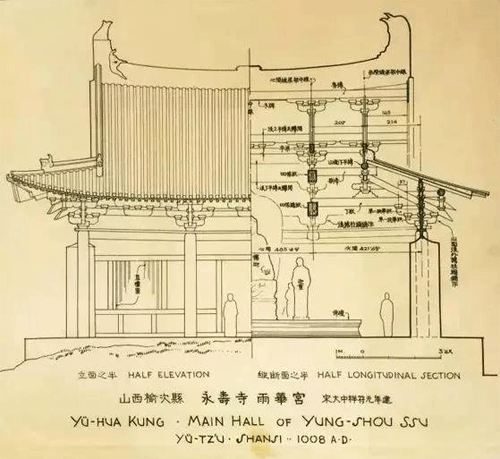 建于1008年山西榆次永壽寺雨華宮,在民國初期據說因為修鐵路被拆。