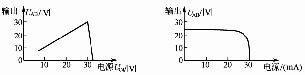 上述限壓限流電路的特性如圖4所示。當濾波電容C4上的整流電壓UC4小于30V時,輸出電壓UAB=UC4,晶體管VT4不起任何限壓作用。但UC4>30V時,VT4很快趨于關斷,隨著UC4的增大,UAB很快降為零。同理,電路的限流作用也是通過晶體管VT4使輸出電壓UAB降低來實現的。