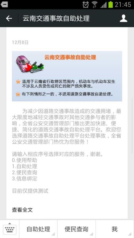 在云南怎樣用微信處理交通小事故: