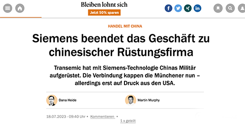 據(jù)報(bào)道稱,Transemic和西門(mén)子在中國(guó)的其他合作伙伴向與中國(guó)軍方有聯(lián)系的研究機(jī)構(gòu)出售了德國(guó)公司的建模軟件。據(jù)德國(guó)《商報(bào)》稱,該軟件可用于“優(yōu)化”軍用裝備和飛機(jī)。