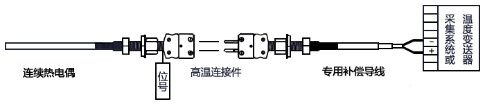 在訂購(gòu)連續(xù)熱電偶時(shí)還需要配套訂購(gòu)與連續(xù)熱電偶固定組件、壓板/填料、走線槽、接線盒、專用補(bǔ)償導(dǎo)線和專用溫度變送器/信號(hào)采集器。
