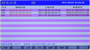 掉電記錄畫面:查看歷史上電/掉電時間記錄