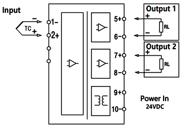 6、一入二出0.1℃分辨力熱電偶溫度變送器在精度、溫度漂移、穩定性、可靠性、功耗、隔離強度、響應時間、輸出波紋、絕緣電阻、負載電阻、使用壽命十一個核心技術指標達到歐美先進產品技術水平