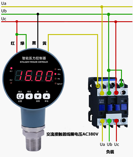 2、AC380V供電,負載高于700W時智能壓力控制器的接線