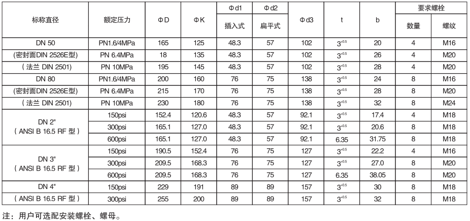 注:超出以上工作溫度和壓力關(guān)系范圍的應(yīng)特別指出,可以通過特殊設(shè)計(jì)來滿足要求。