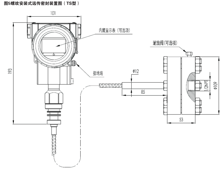 遠(yuǎn)傳壓力變送器基本型遠(yuǎn)傳密封裝置安裝式圖
