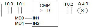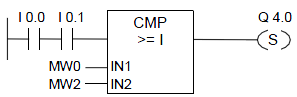 如果比較結果為“真”,則函數的RLO為“1”。如果以串聯方式使用該框,則使用“與”運算將其鏈接至整個梯級程序段的RLO;如果以并聯方式使用該框,則使用“或”運算將其鏈接至整個梯級程序段的RLO。