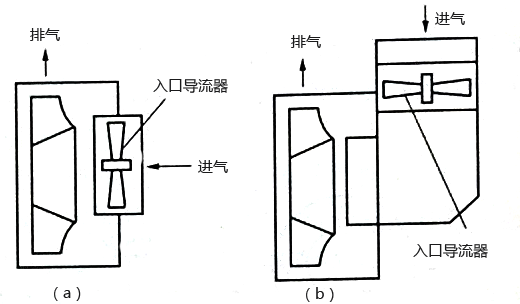 圖5 風(fēng)機(jī)入口導(dǎo)流器 備注:(a)軸向?qū)Я髌鳎?b)徑向?qū)Я髌?br />