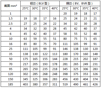 BV-105耐熱聚氯乙烯絕緣電線的載流量對(duì)照表