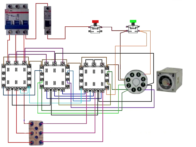 圖5 星形-三角形降壓啟動電路元件實物連線圖