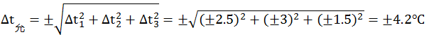 被檢測溫裝置允許基本誤差Δt允為: