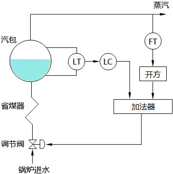 為了克服由于蒸汽負荷量波動造成“假液位”的現象,我們把蒸汽流量的信號引入汽包水位調節系統,這樣就構成了雙沖量調節系統。
