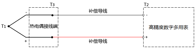 正確連接時(shí)(見圖1),如果熱電偶的種類為Y,補(bǔ)償導(dǎo)線為YX,應(yīng)用中間導(dǎo)體定律,可以得到高精度數(shù)字多用表接受的電壓為: