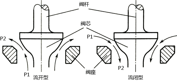 圖10-4 調(diào)節(jié)閥閥芯與介質(zhì)流向示意圖