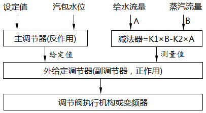 圖2 鍋爐汽包水位三沖量串級調節(jié)控制策略
