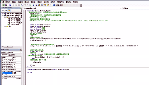 ③進入后,即可看到熟悉的VB窗口了。在按鈕屬性中,插入如下的代碼。