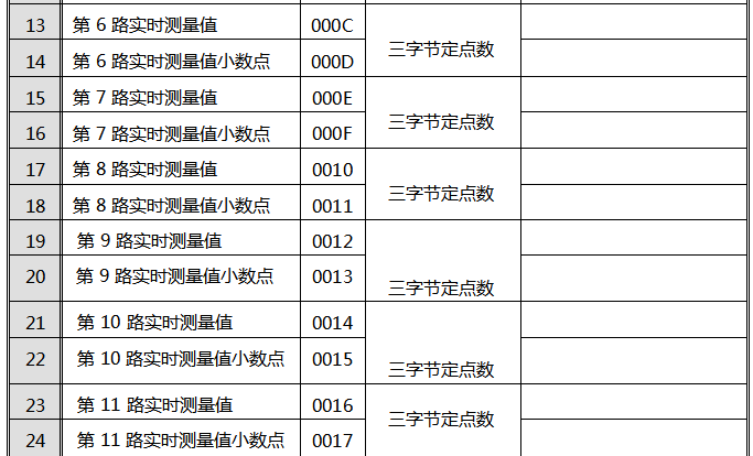 2、SWP-MD80多路巡檢儀數據格式:2字節寄存器值=寄存器數高8位二進制數+寄存器低8位二進制數
