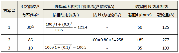 說明:公式中:1N'為3次諧波在N導體中產生的電流,A;Ic為三相平衡系統未計入諧波的計算電流,A;HRI3為3次諧波電流含有率,為3次諧波電流與基波電流的比值;Ic'為計入3次諧波后的相電流,A。