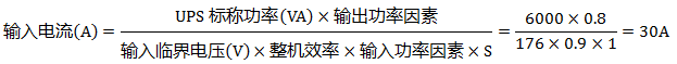 例2:已知:UPS功率6kVA,輸入臨界電壓176V,輸入功率因數0.99(高頻機都可以近似取1,工頻機取值0.85),整機效率0.90,S=1,輸出功率因數0.7。