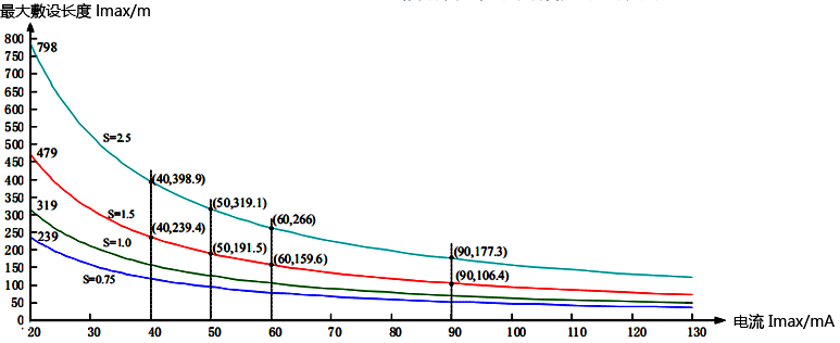 圖8 電纜最大敷設(shè)長(zhǎng)度(220VAC供電)