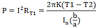 第一步,電纜中單位長度的熱量在導(dǎo)體中產(chǎn)生并通過絕緣層向外按徑向傳導(dǎo)的功率由等式2給出。根據(jù)下面等式2,繪制出P與T2的關(guān)系曲線,這個是電線導(dǎo)體產(chǎn)生的熱量功率。
