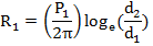 這里:P1為絕緣材料熱阻率(℃.cm/W),聚氯乙烯取600,聚乙烯取450;d1為導(dǎo)體外徑;d2為絕緣外徑