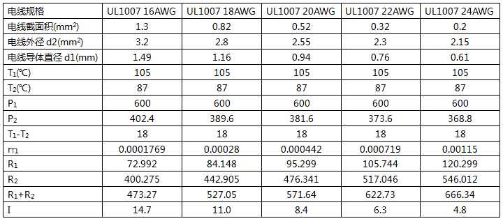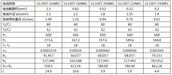 現(xiàn)在以UL 1007電線為例,進行計算。UL1007電線的規(guī)格如下。
