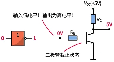 如上圖所示,圖13的三極管是NPN型三極管,當(dāng)輸入端輸入0V時(低電平),三極管就會進(jìn)入截止?fàn)顟B(tài),輸出端就會5V(高電平)。