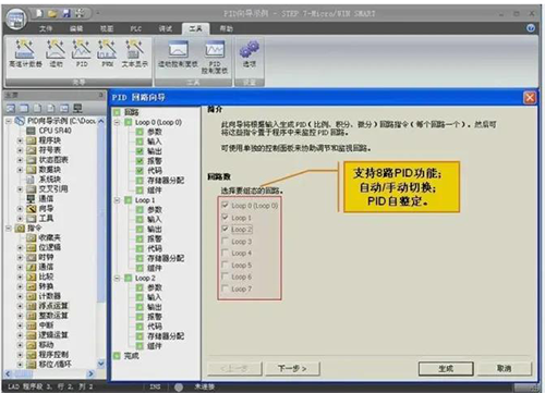 配置PID向?qū)АT诠ぞ卟藛喂δ軈^(qū)單擊PID按鈕打開PID回路向?qū)υ捒颍x擇要組態(tài)的回路,最多可組態(tài)8個回路,這里我們選擇回路0。