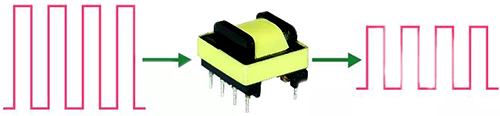 而在開關電源電路里,高頻變壓器傳輸?shù)氖歉哳l脈沖方波信號。