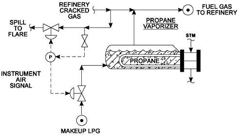 燃?xì)鈮毫ο陆祵?dǎo)致液化石油氣補(bǔ)給閥的儀表空氣信號(hào)增加。這是一個(gè)“氣開(kāi)”閥,需要更多的空氣壓力來(lái)打開(kāi)丙烷流量控制閥。這很正常。