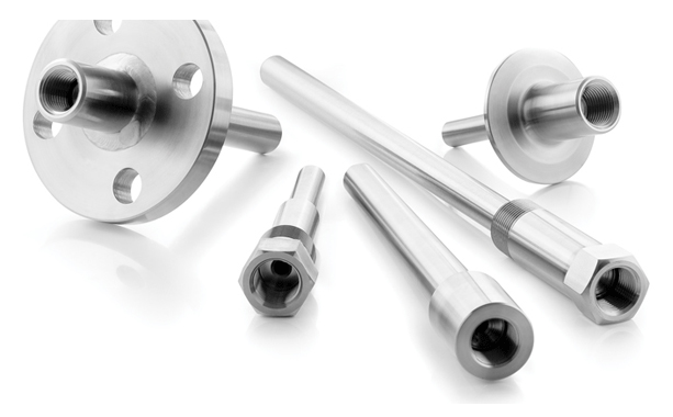 流程工業中常采用帶有保護套管的熱電偶、熱電阻和雙金屬溫度計等測量介質溫度。測溫點的工況決定溫度傳感器套管的類型、材質和連接形式。套管有直形、錐形和階梯形。一般中低壓的場合,可選用直形套管;對于被測介質流速較高、要求套管高強度的場合,可選用錐形套管;對于要求阻力小、響應時間短的場合,可選用階梯形套管。溫度計套管連接有法蘭、螺紋和焊接三種形式。溫度計套管材質通常選用316SS不銹鋼或其他材料。