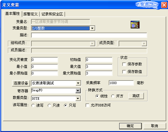 如果需要保存,可以把狀態選中。對于保存數據,不在本討論中,請自行查看組態王的數據保存。