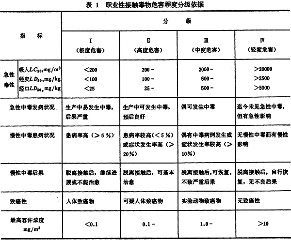 并且在該標(biāo)準(zhǔn)中,首次將危險(xiǎn)化學(xué)品的毒性劃分成Ⅰ級(jí)(極度危害)、Ⅱ級(jí)(高度危害)、Ⅲ級(jí)(中度危害)、 Ⅳ級(jí)(輕度危害)。劃分依據(jù)如下: