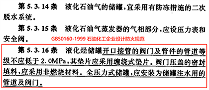 由于該事故發(fā)生于1998年,所以到了次年,也就是1999年石化規(guī)GB 50160開始修訂,在1999版的石化規(guī)里,新增的第5.3.16條,就是為了這次事故而增加的經(jīng)驗教訓,并且首次提出了全壓力式儲罐應設置注水系統(tǒng)。