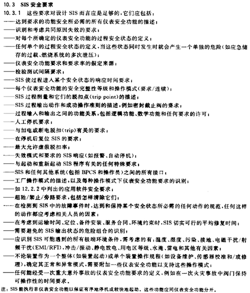GB/T 21109.1-2007,10 SIS安全要求規(guī)范,要求如下: