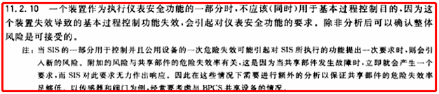 過程控制領(lǐng)域安全儀表系統(tǒng)的功能安全 第1部分框架、定義、系統(tǒng)、硬件和軟件要求:一個裝置作為執(zhí)行儀表安全功能的一部分時,不應(yīng)該(同時)用于基本過程控制目的,因為這個裝置失效導(dǎo)致的基本過程控制功能失效,會引起對儀表安全功能的要求,除非分析后可以確認(rèn)整體風(fēng)險是可接受的。