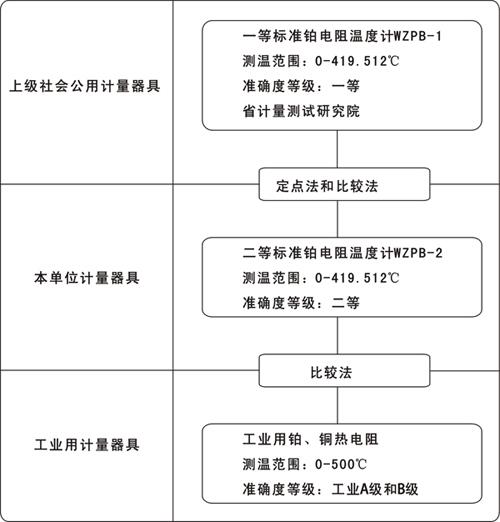計量標準組成:二等標準鉑電阻溫度計、電測設備、轉換開關、冰點槽、恒溫油槽等。