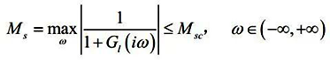 由于被控過(guò)程本身具有的不確定性,以及建模過(guò)程的不確定性,可以自然地想到利用控制系統(tǒng)的魯棒性作為參數(shù)整定推導(dǎo)的約束性調(diào)節(jié)。在該研究中,選擇容易量化的最大靈敏度Ms作為魯棒性指標(biāo)。根據(jù)的定義,最大靈敏度約束可表示為: