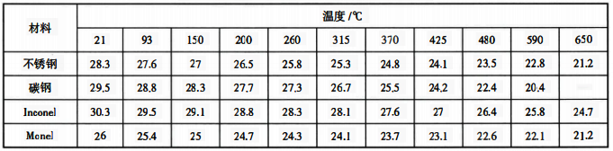 表1 溫度計套管材質的彈性模量的取值(×6.9MPa)