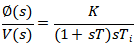 如果受控系統是基于恒定勵磁(例如永磁體)的直流電機的伺服機構,則可以通過簡化的傳遞函數來描述,在s域中電壓的角位移為: