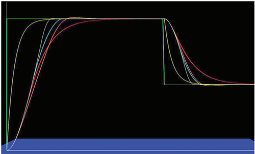 在本文的最后,讓我們看看與其它類型的控制器相比,這種時間最優控制器的性能如何。其輸出變量函數以圖8中亮藍色線表示。