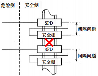 當(dāng)用本安型信號(hào)浪涌保護(hù)器及連接的設(shè)備時(shí),應(yīng)將本安型信號(hào)浪涌保護(hù)器與安全柵分開安裝在兩排不同的導(dǎo)軌上,以滿足危險(xiǎn)側(cè)與安全側(cè)接線端子之間50mm的間隔要求,同時(shí)可使得布線更加整齊,如下圖所示。