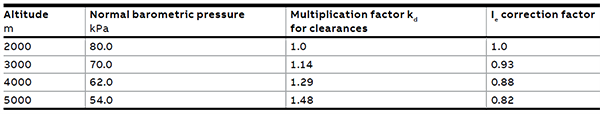 其中H為海拔高度,m在低壓一般取0.5,例如對于4000米海拔時Ka系數為1.28,意味著如果原來低壓電器的額定絕緣電壓為690V(2000米海拔),那么4000米海拔時其額定絕緣電壓要達到690V×1.28≈883.2V。