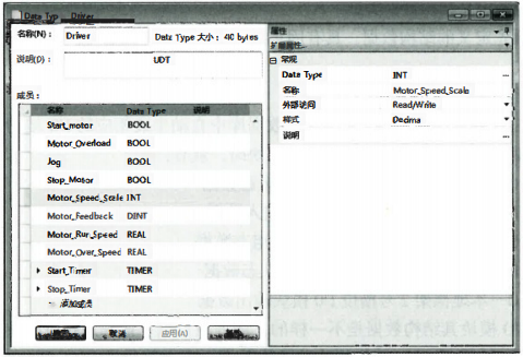 用戶自定義數(shù)據(jù)結(jié)構(gòu)。用戶自定義數(shù)據(jù)結(jié)構(gòu)(UDF)是在編程時為了某一控制任務(wù)組織相關(guān)數(shù)據(jù)而建立的數(shù)據(jù)結(jié)構(gòu),以便于數(shù)據(jù)的查找、監(jiān)視和傳輸?shù)取T诮?shù)據(jù)結(jié)構(gòu)的過程中,數(shù)據(jù)元素的定義順序與存儲器空間的占用有關(guān)。BOOL類型占1位,每建立一個BOOL元素,都會存放在剩余的空間上。如果空間不夠,再劃出新的32位字的空間。同理,SINT類型占8位,每建立一個SINT元素,都會存放在剩余的空間上。如果空間不夠,再劃出新的32位字的空間。其他類型以此類推。一個完整的用戶自定義數(shù)據(jù)結(jié)構(gòu)UDF的大小一定是32位的整數(shù)倍。