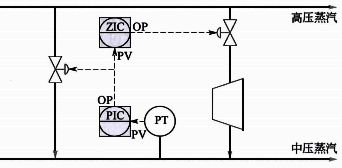 圖3的中壓蒸汽壓力會首先使用減溫減壓閥進行快速控制,然后通過閥位控制調節(jié)透平在保證中壓蒸汽精確控制的前提下進行優(yōu)化節(jié)能。當中壓蒸汽用量增加時中壓蒸汽壓力降低,壓力控制回路首先打開減溫減壓閥以快速維持中壓蒸汽穩(wěn)定,當減溫減壓閥開度超過閥位控制設定值時,閥位控制器會緩慢開大到透平的蒸汽調節(jié)閥以更節(jié)能方式產生中壓蒸汽,然后壓力控制會減小減溫減壓閥的開度以維持中壓蒸汽。反之亦然。