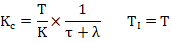 一階純滯后自衡對象使用三參數描述:穩態增益 K,動態時間 T,純滯后時間 τ。相應的Lambda整定公式: