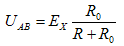 單級或多級L形濾波器都可用上圖所示電路等效,當濾波電容C正常時,具有隔直流的作用。此時自動平衡顯示儀表輸入端的信號EX都加至A、B端,即EX=UAB。當C漏電時其漏阻為R(如圖中虛線所示)。此時加至A、B端的信號: