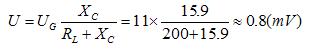 當串模干擾電壓UG為50Hz、11mV時,經過濾波器的衰減,加至儀表放大器輸入端的干擾電壓只有:
