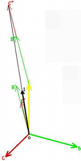 零序:三個向量不動,向量相加后除以3。把三個向量相加求和。即A相不動,B相的原點平移到A相的頂端(箭頭處),同方法把C相的平移到AB’的頂端。此時作0點到C’的向量,這個向量就是三相向量之和。取此向量幅值的三分之一,向0O,這就是零序分量。